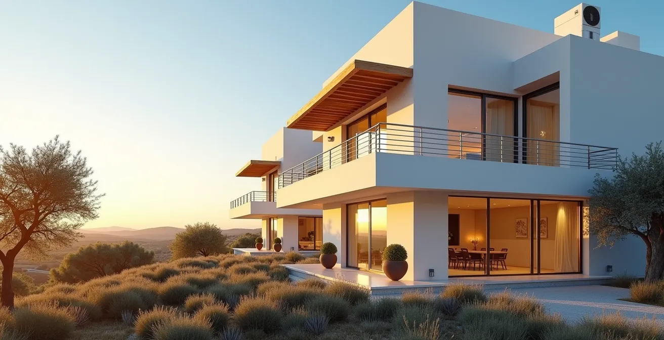 La vraie révolution de la RE2020 en PACA n’est pas l’isolation, mais la gestion intelligente du soleil. On parle de conception bioclimatique : une approche qui utilise l’architecture pour créer un confort thermique passif. L’idée n’est plus de sur-isoler pour se protéger, mais de concevoir un bâtiment qui collabore avec le climat méditerranéen. L’orientation des baies vitrées est optimisée pour capter le soleil bas et gratuit de l’hiver, tout en étant protégées du soleil haut et accablant de l’été par des casquettes architecturales ou des balcons.